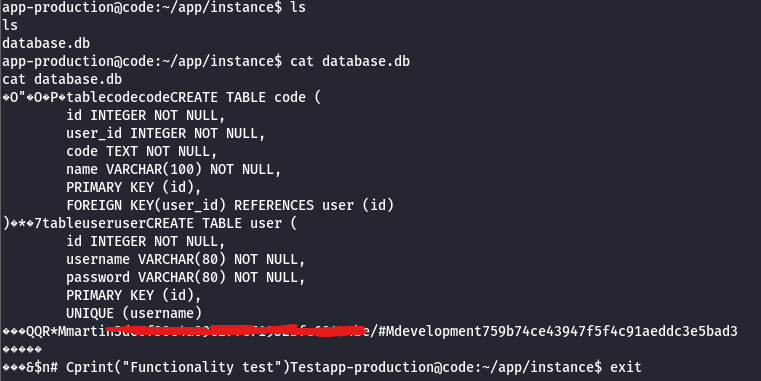 We now have a username and password that we can use to log in as martin.
