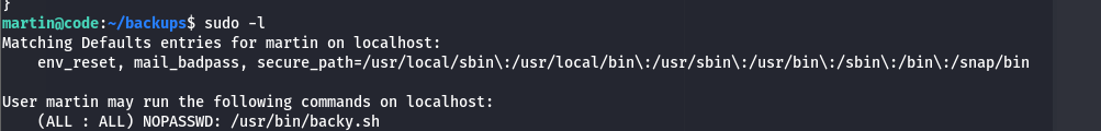 By executing this command: sudo -l to see if i have access to sudo or not and what commands i can run, i found the following: