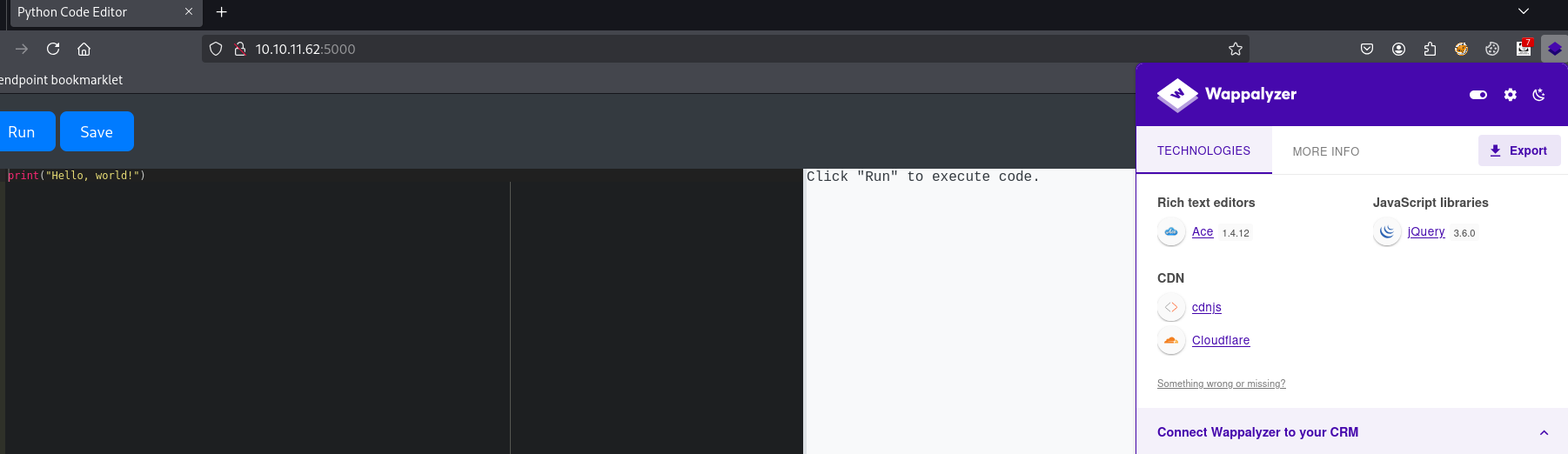 I start analyzing JavaScript files to search for sensitive data or endpoints. I found some, but they led to absolutely nothing. Then i started looking for vulns related to this version, found nothing. So i started to play a little bit with the code editor.