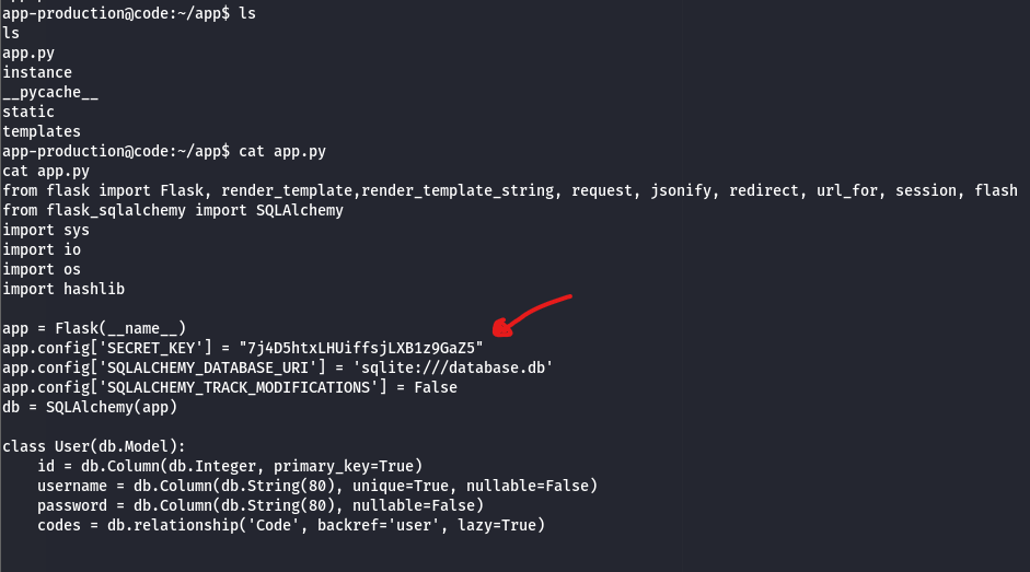 By executing the ls command to list the files in the dir, as you can see, we have the source code of our app: app.py