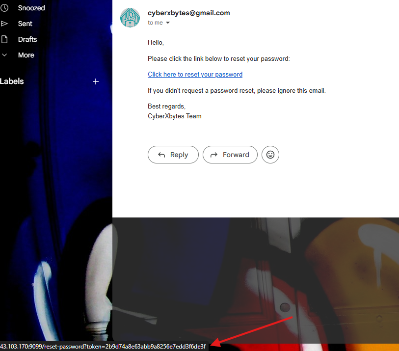 We need access to hack.CyberXbytes@gmail.com in order to get the flag. Let’s navigate to the/forget-password endpoint, which we’re gonna use to reset the victim’s password.